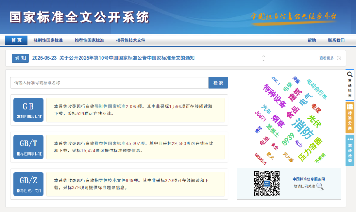 - 食品安全国家标准、生态环境国家标准、工程建设国家标准 未纳入本系统,请咨询相关部委