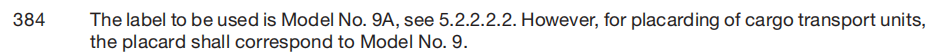 当归类为上述三个条目的车辆有外包装时,根据特殊规定SP384的要求,包件须显示NO.9A标志,货物运输组件上须张贴NO.9类标牌。